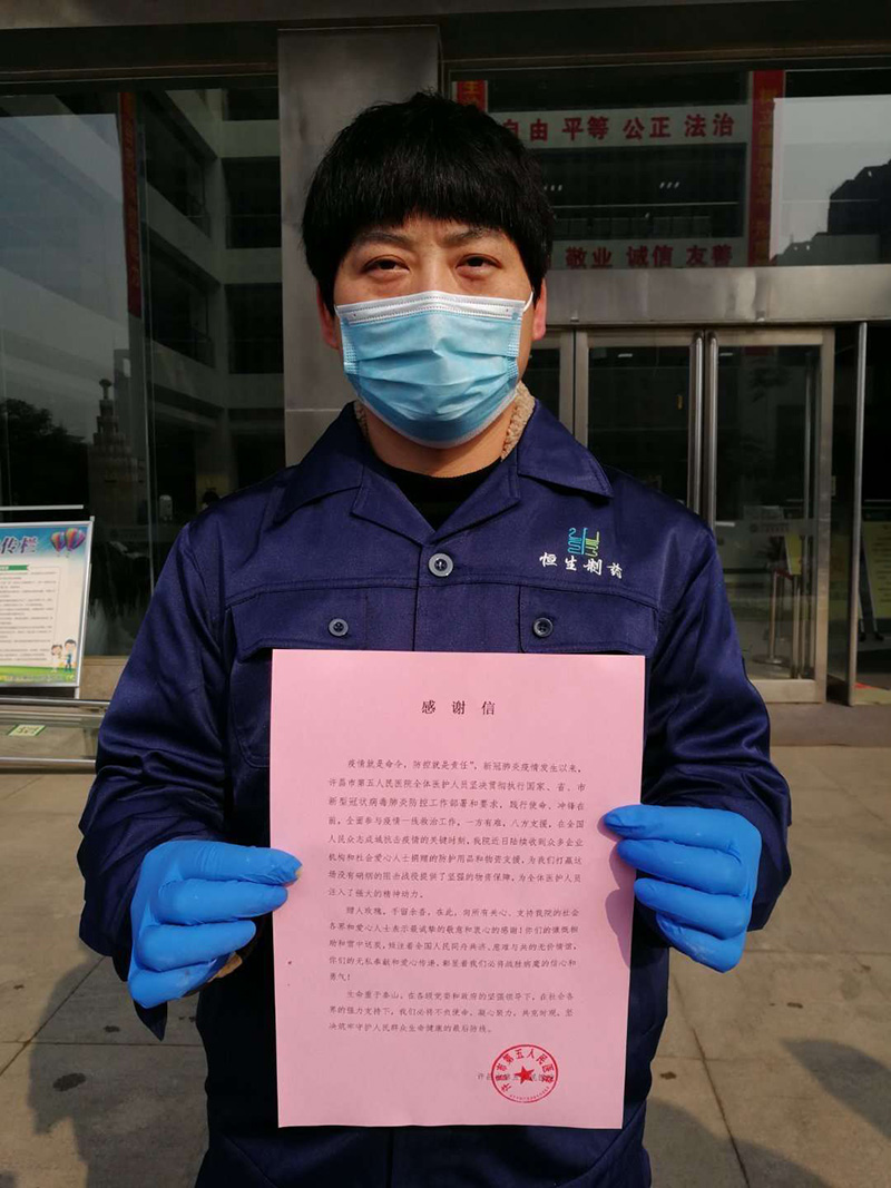 在得知相關防疫物資需求量不斷上升,各項物資處于緊缺的情況下,許昌恒生制藥有限公司第一時間通過許昌市建安區(qū)慈善總會捐贈84消毒液1.25噸,全部用于疫情防控工作。